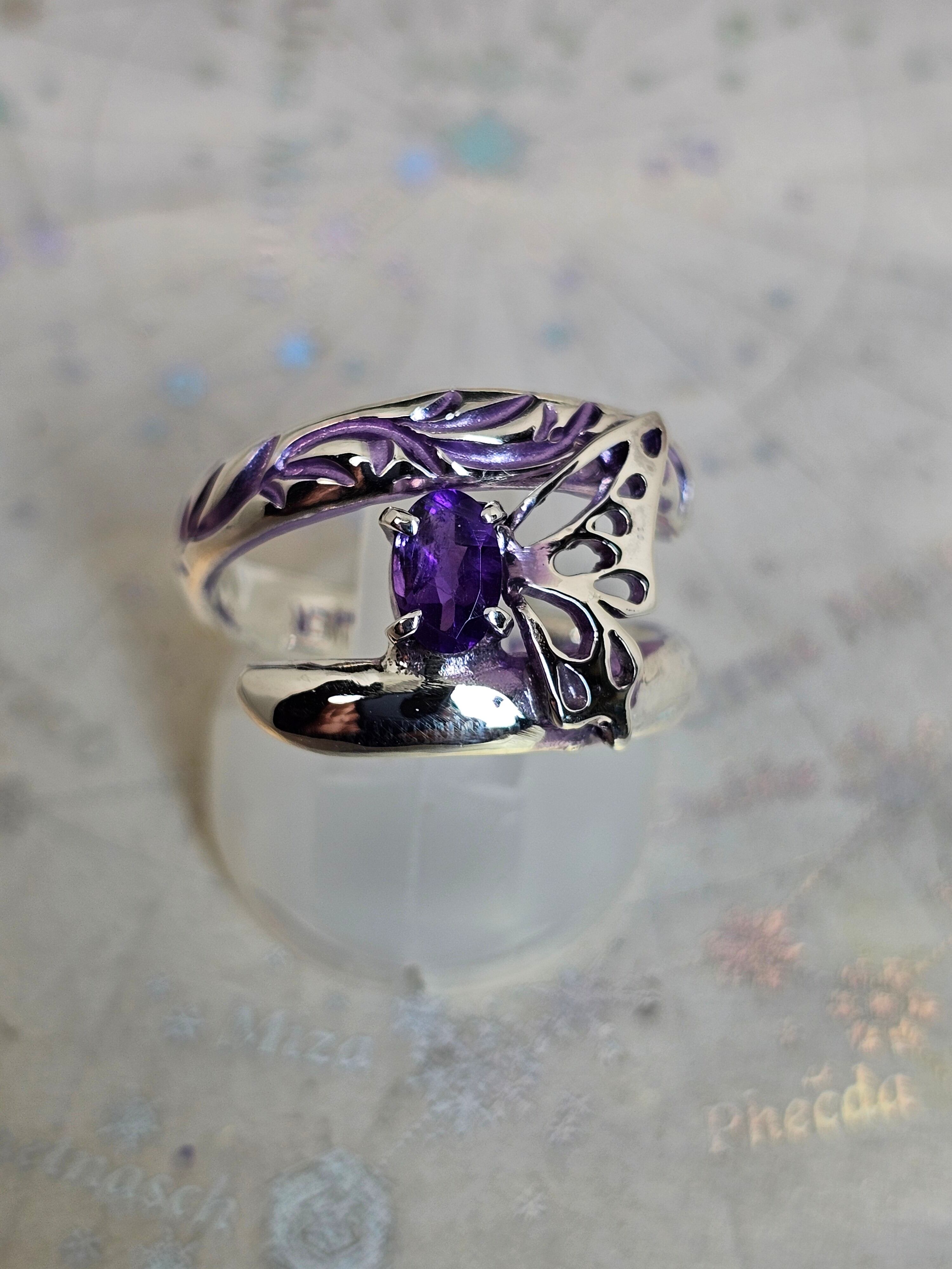 エレカラ×宝石と片翅蝶の指輪 ザンビア産アメシスト6×4mm