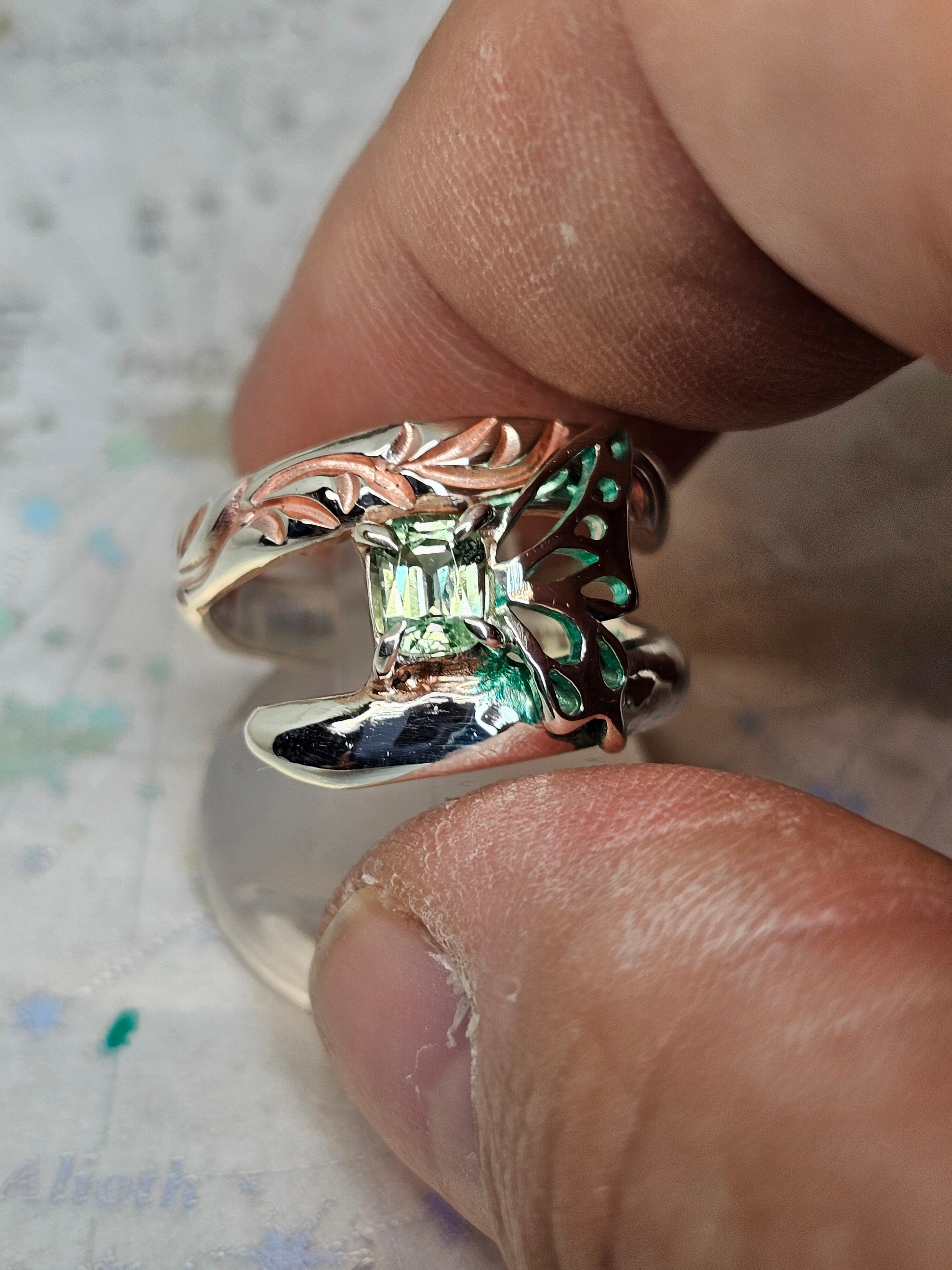エレカラ×宝石と片翅蝶の指輪 天然ミントグリーントルマリン5.2×4.2mm