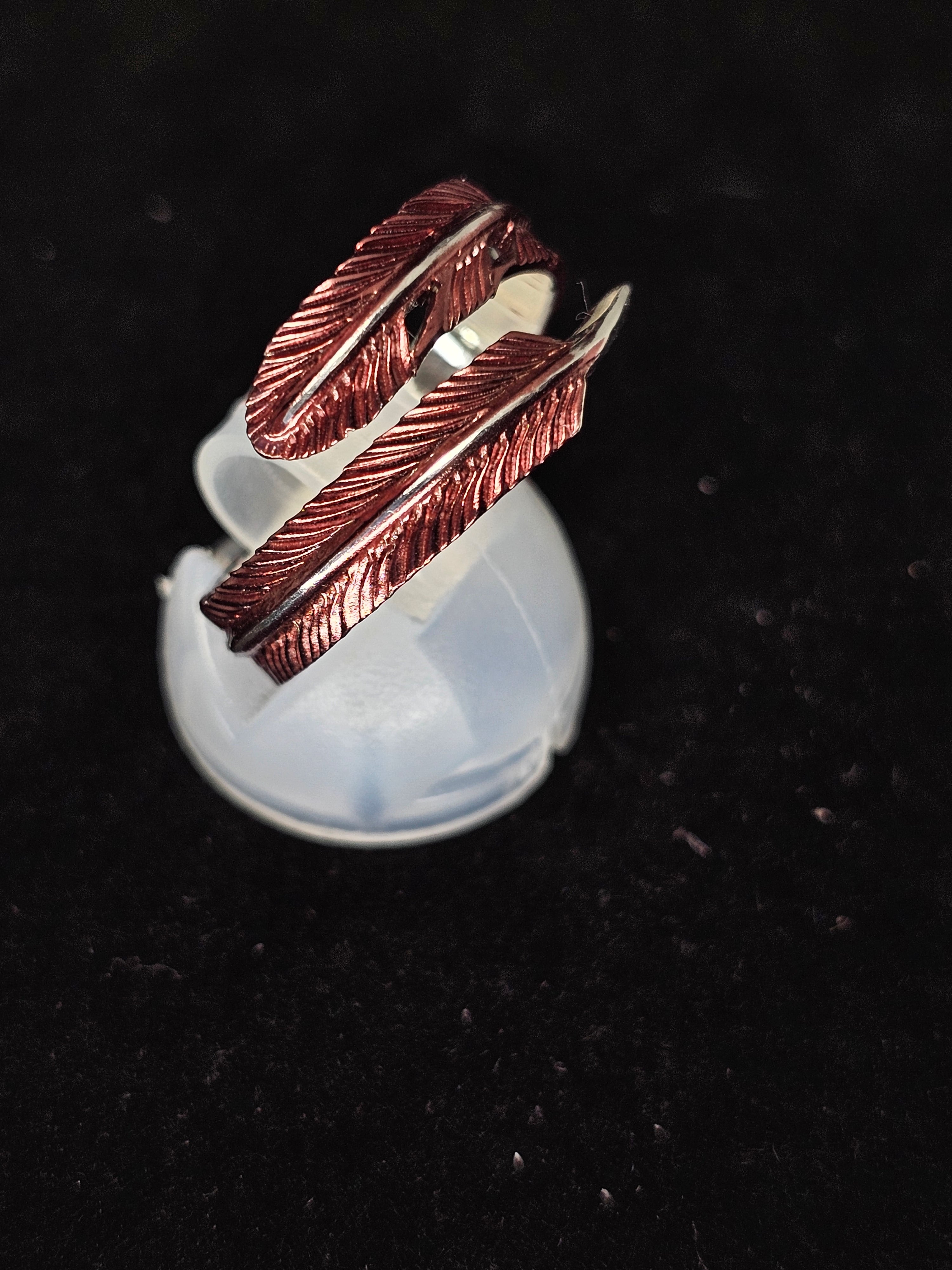 手彫りのフェザーリングに、エレカラのマロンブラウンのコーティングを施した美しい指輪です。