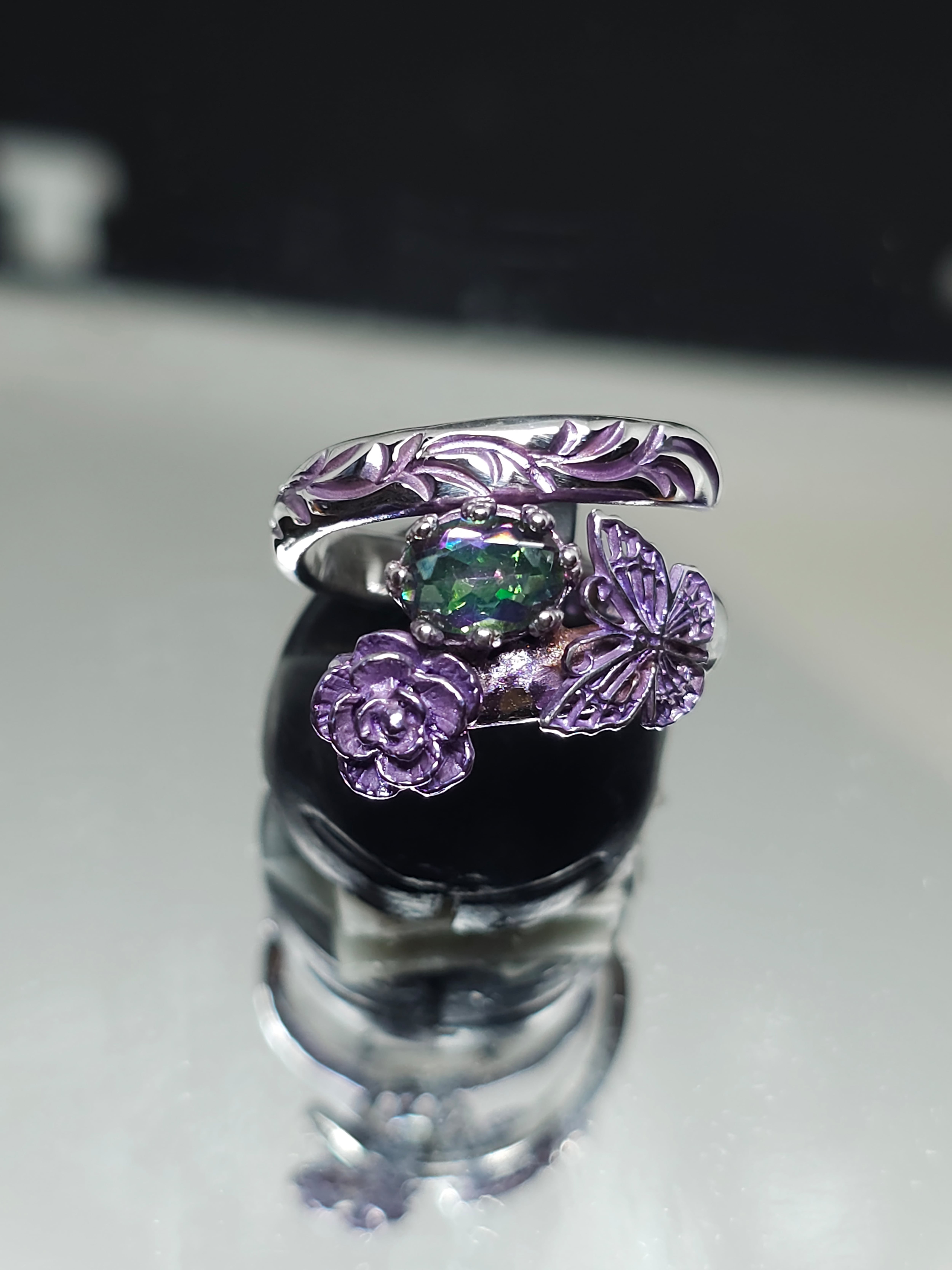 エレカラ×薔薇と蝶と宝石の指輪 ミスティッククォーツ7×5mm