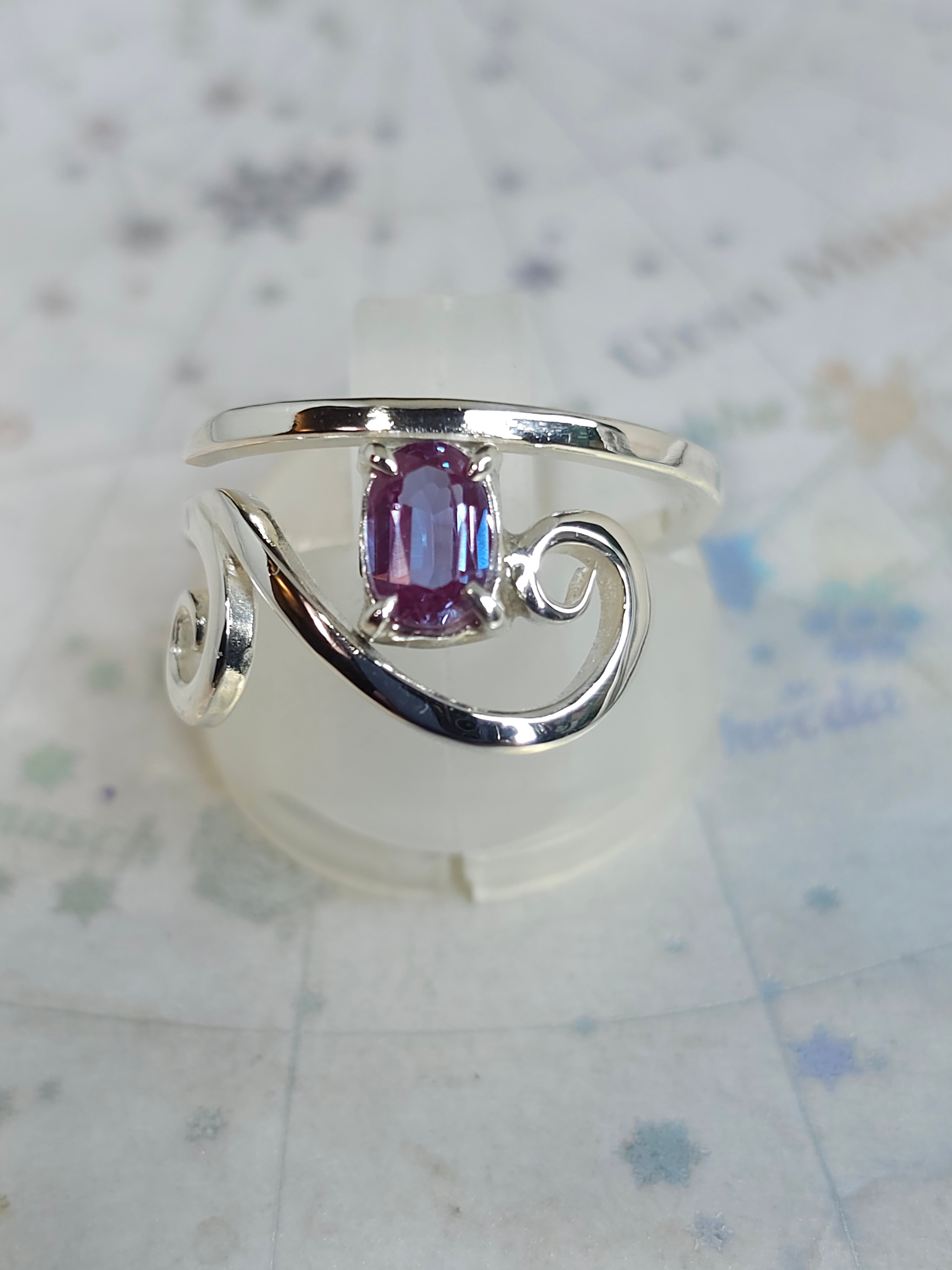 クルクルリング 合成アレキサンドライト6×4mm