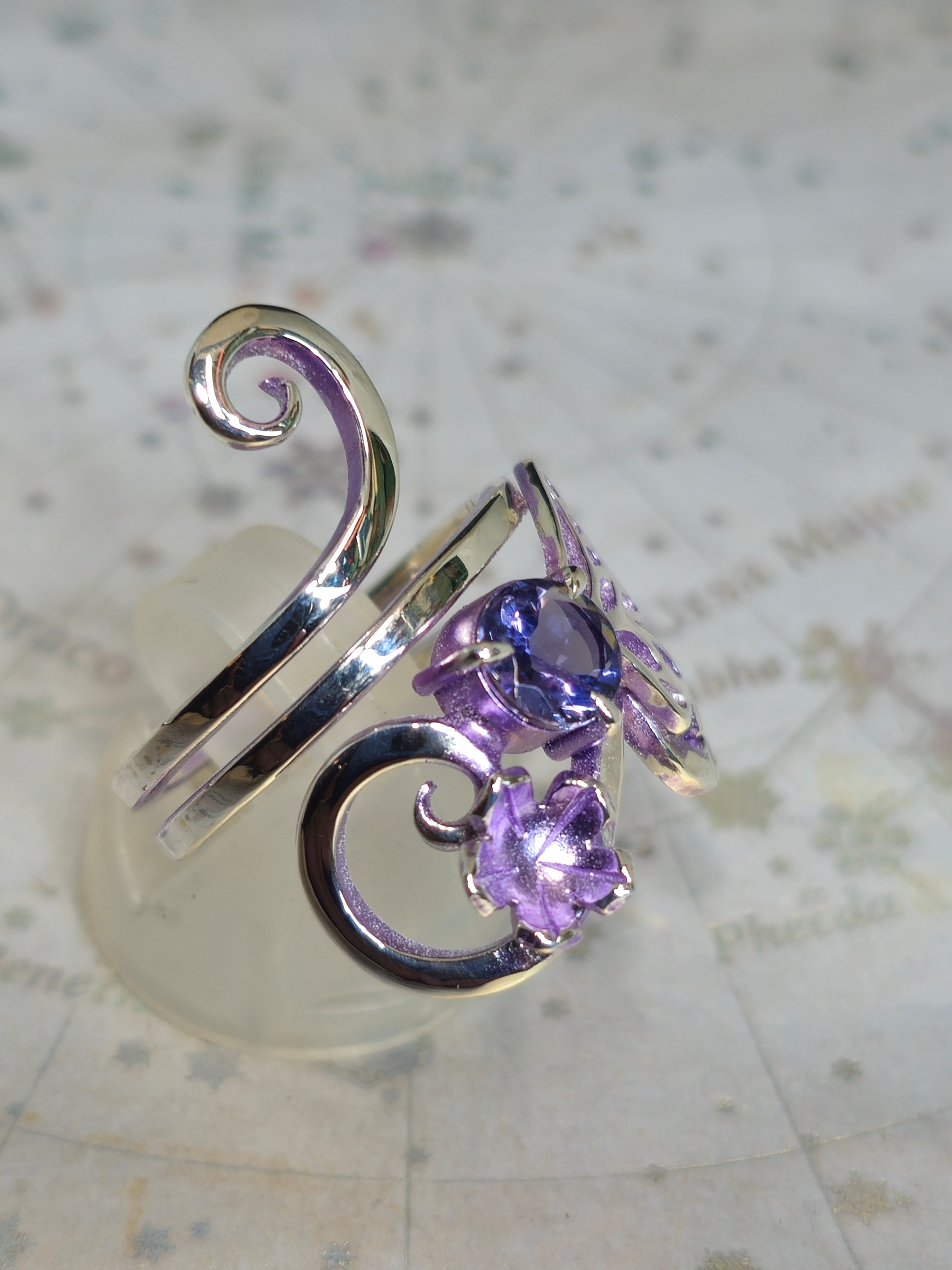 エレカラ×紫のペチュニアと片翅蝶のクルクルクルリング マダガスカル産アイオライト6mm