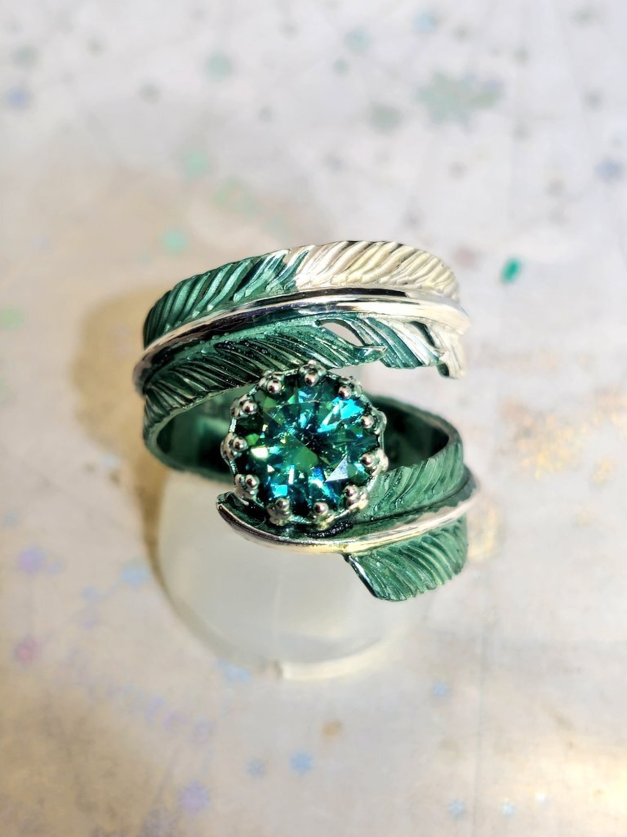 エレカラ×フェザージュエリーリング 合成グリーンモアッサナイト8mm