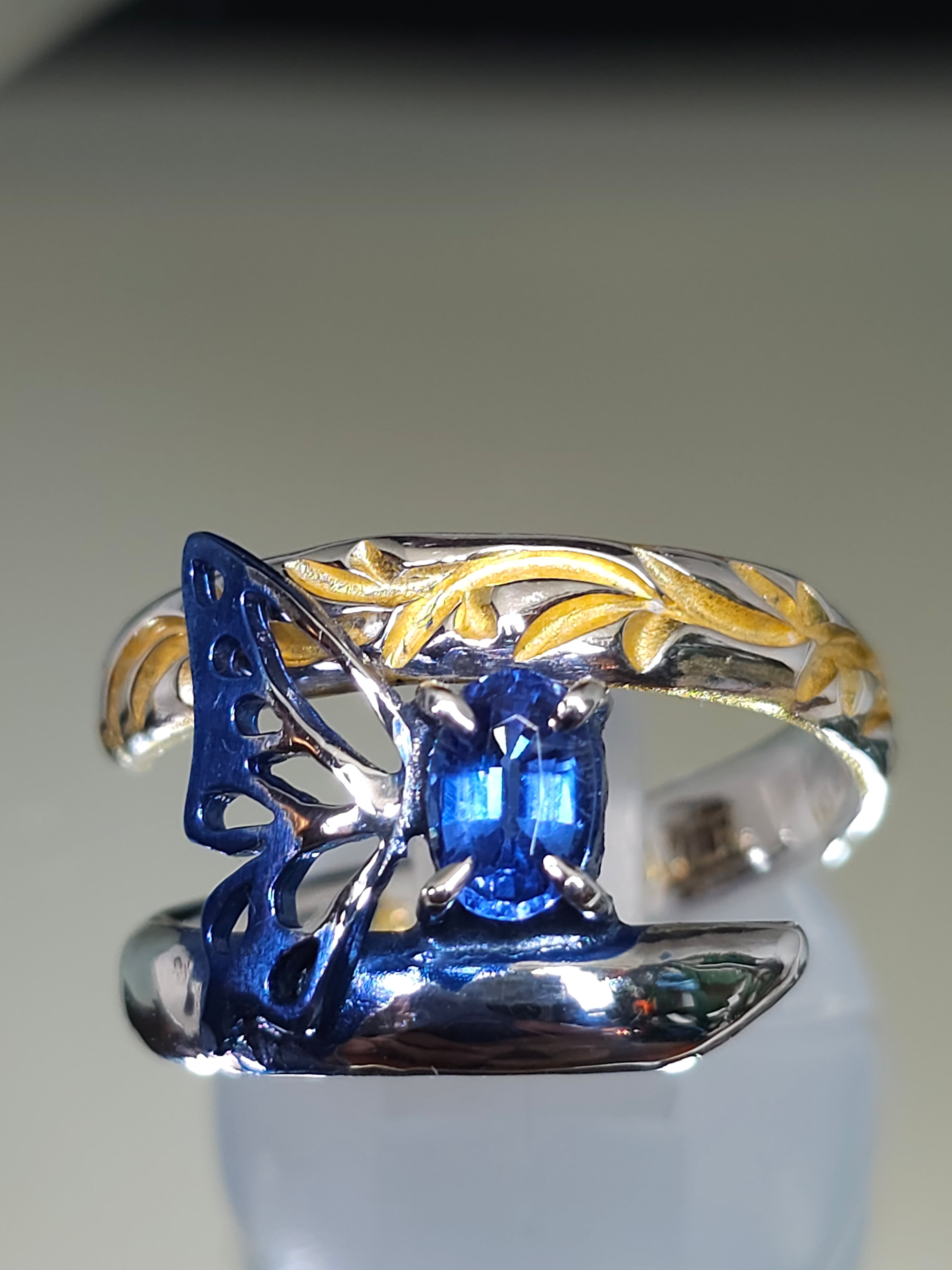 エレカラ×宝石と片翅蝶の指輪 チベット産カイヤナイト6×4mm
