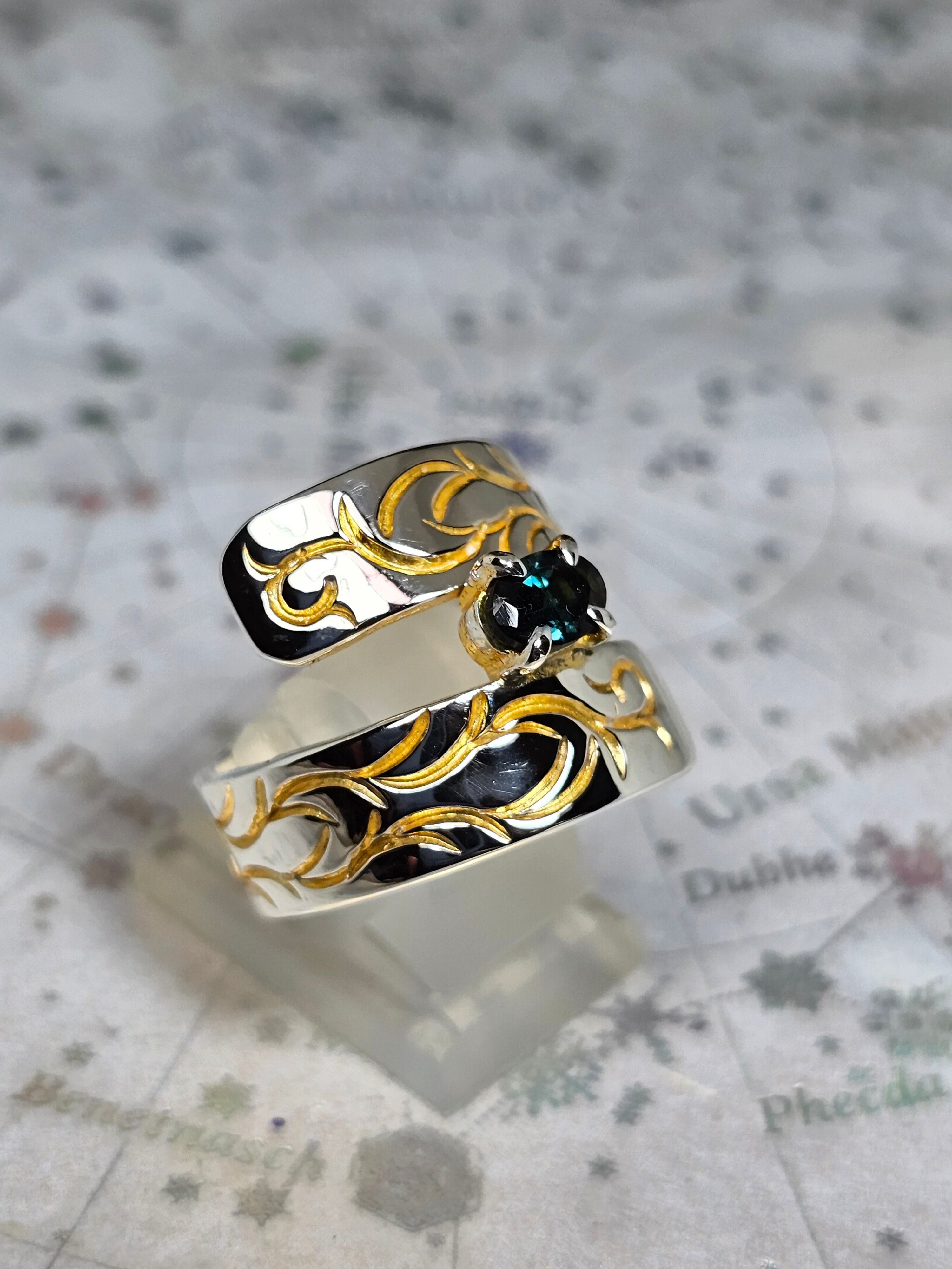 エレカラ×二重ロウハ彫りの指輪 天然インディゴライトトルマリン