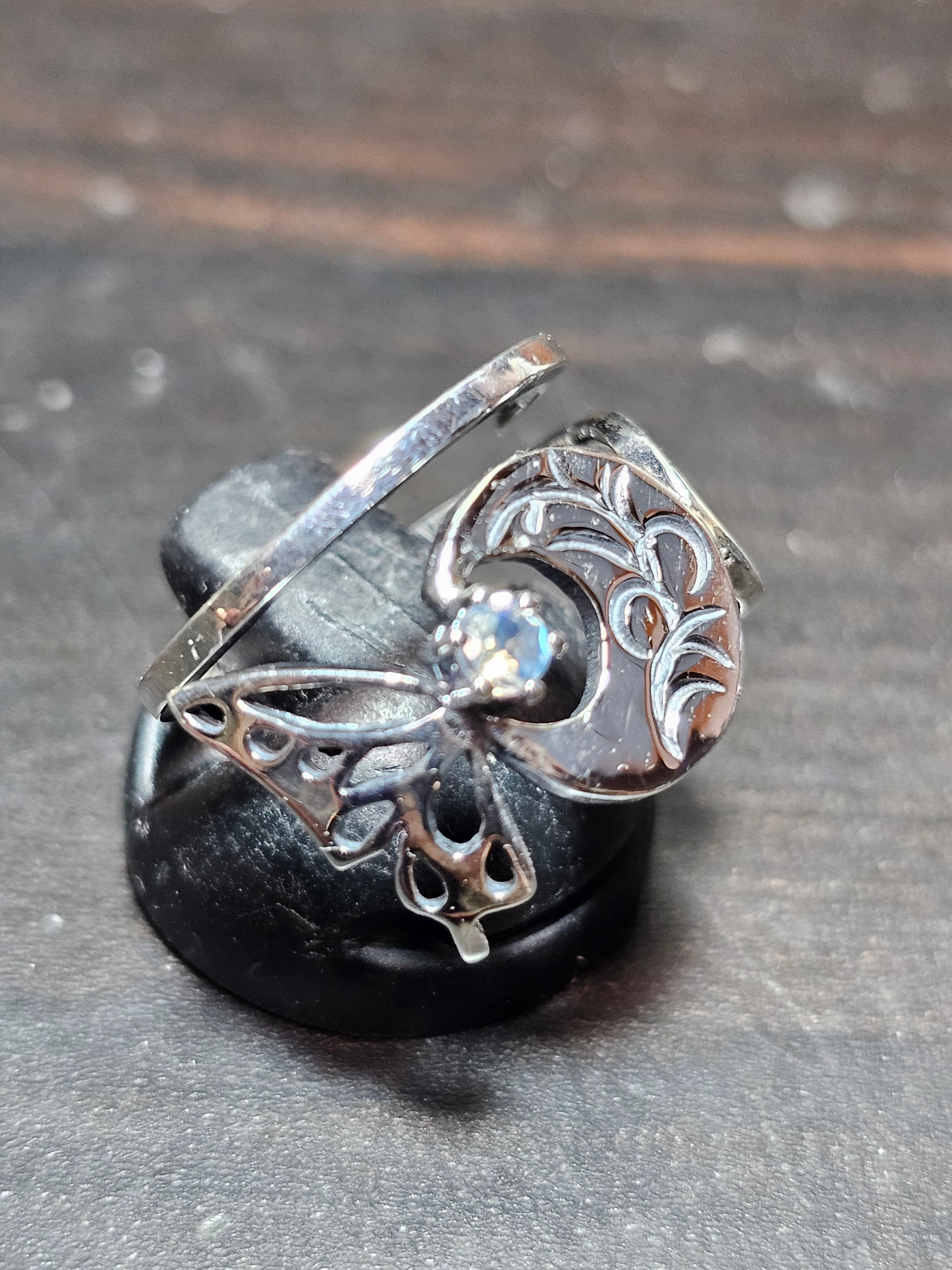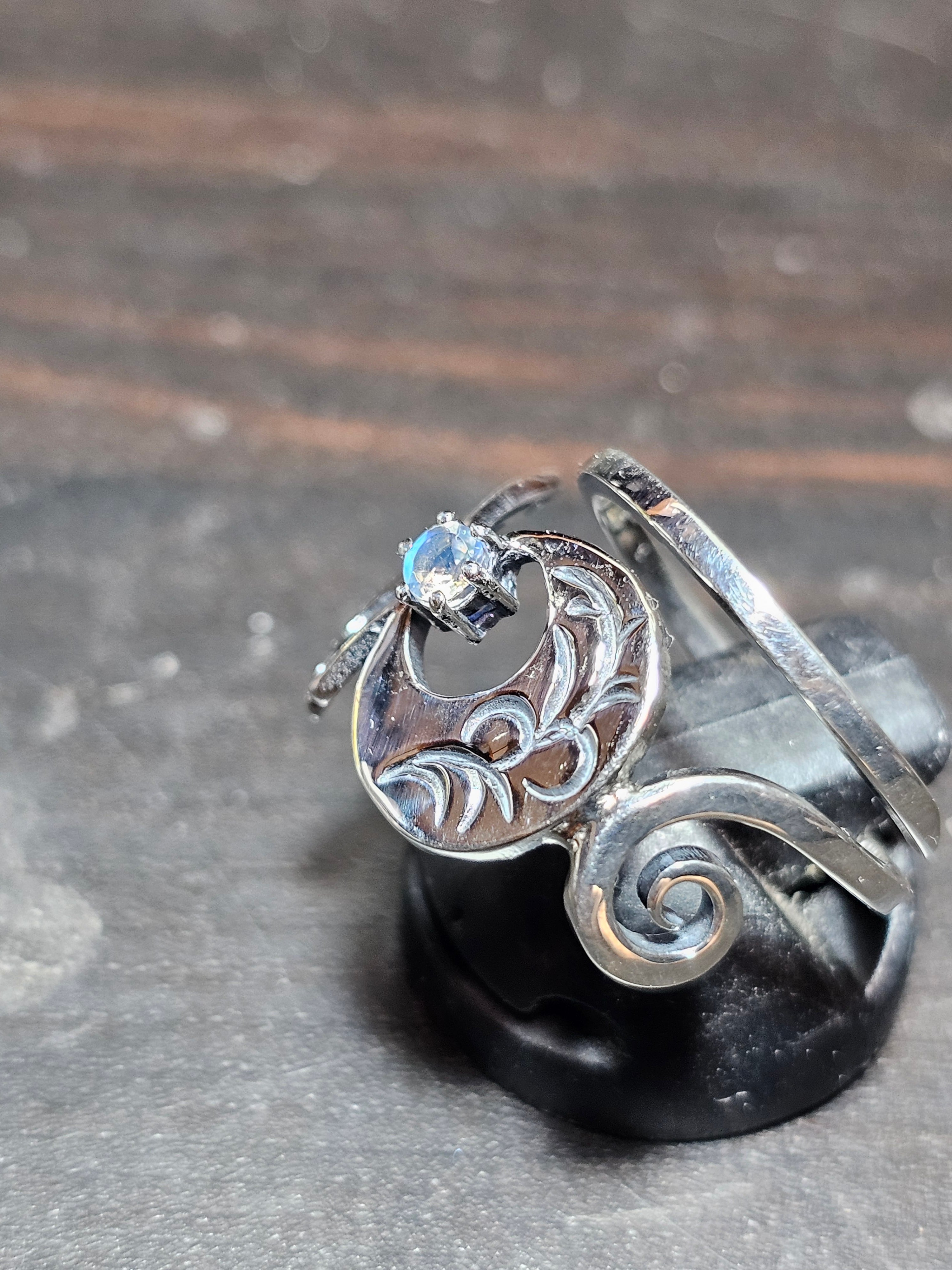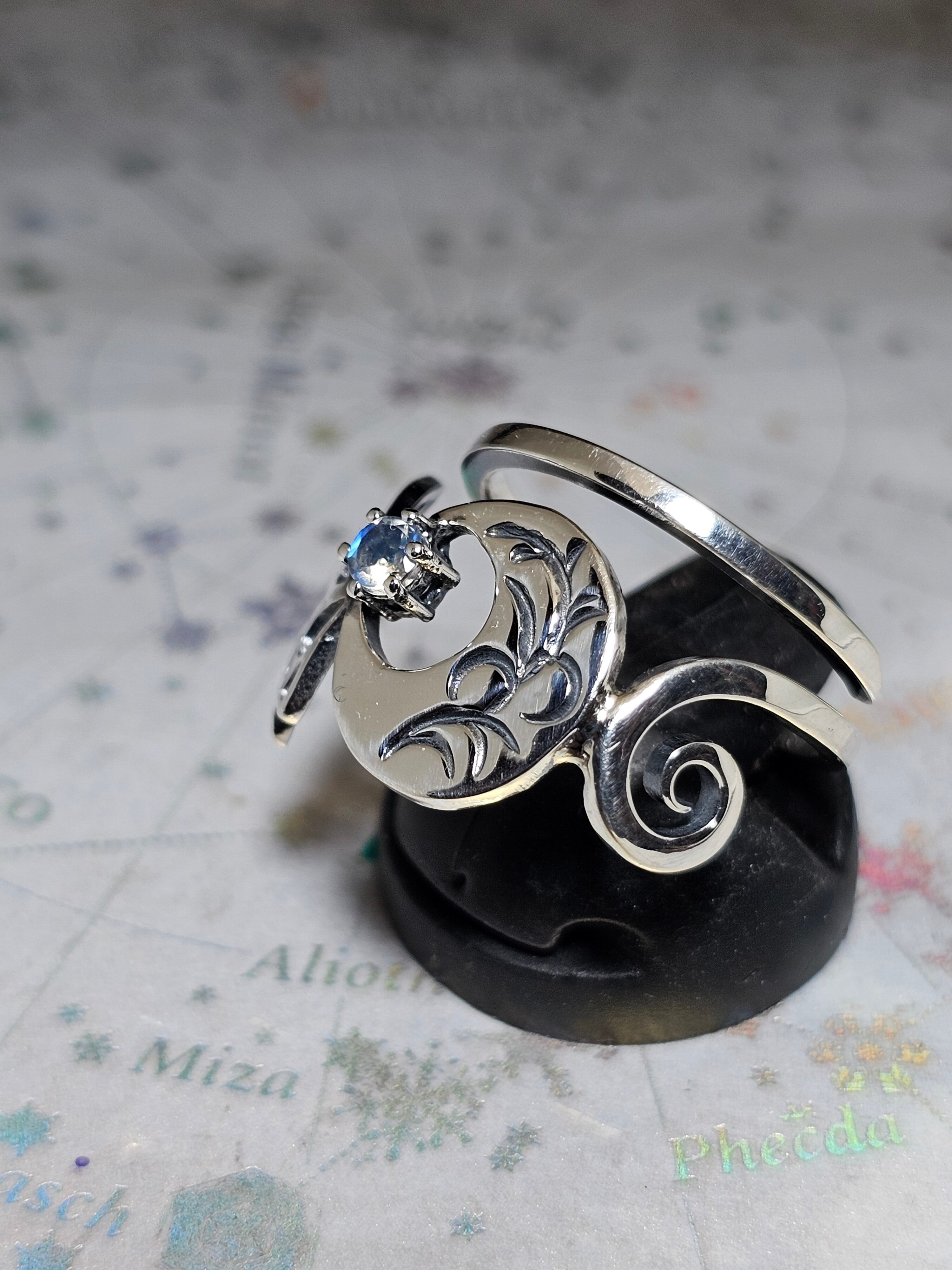 蒼月と片翅蝶のクルリング インド産レインボームーンストーン(白ラブラドライト)3mmラウンド