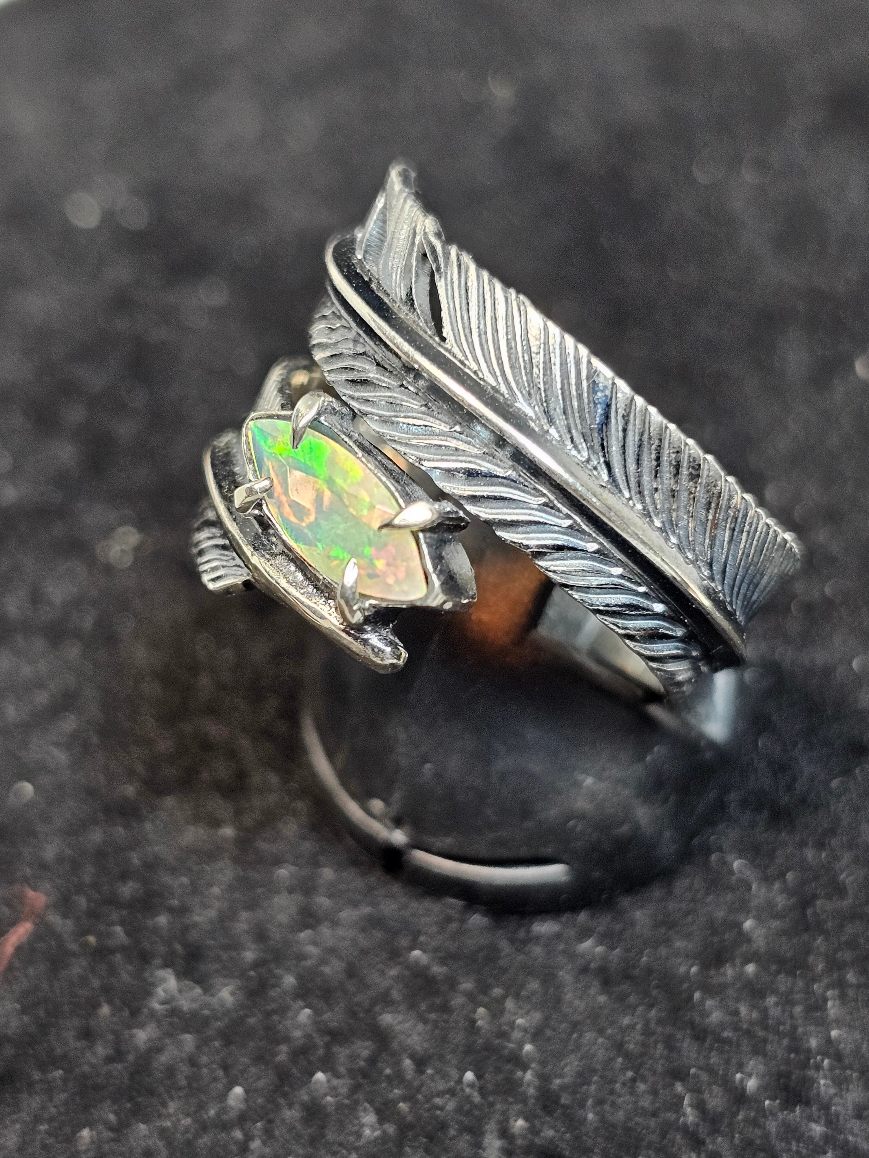 燻しフェザージュエリーリング エチオピア産オパール10×5mm